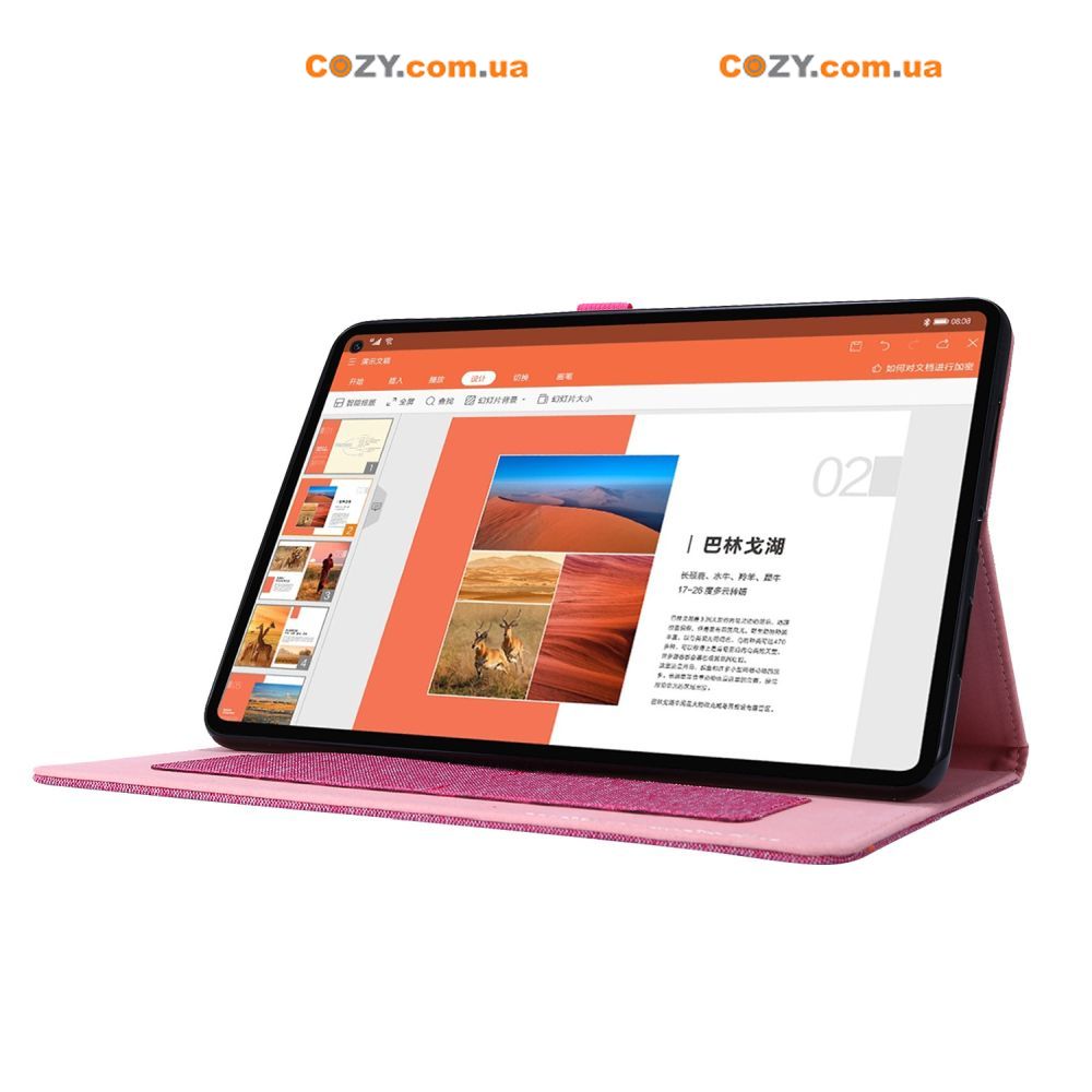 Чохол FashionGum на планшет Lenovo Tab P12 12.7 зроблений з приємного щільного матеріалу, який прослужить набагато довше звичайної еко шкіри. Він набагато менше затирається, не тріскається і не вигоряє на сонці. Усередині м'яка оксамитова тканина не дасть дрібним порошинкам залишати подряпини на моніторі.